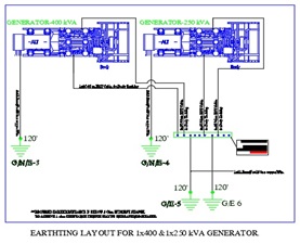 Sub-Station: The first step of eMcS in designing a Substation is to design an Earthling and Bonding system. Earthling and Bonding The function of an earthling and bonding system is to provide an earthling system connection to which transformer neutrals or earthling impedances may be connected in order to pass the maximum fault current. The earthling system also ensures that no thermal or mechanical damage occurs on the equipment within the substation, thereby resulting in safety to operation and maintenance personnel. The earthling system also guarantees equip potential bonding such that there are no dangerous potential gradients developed in the substation.
